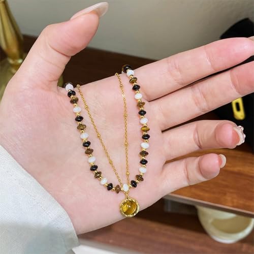 Tigers Eye Necklace Brown Pendant Gold Necklaces for Women Jewelry Collection Mother of Pearl Dainty Coins Evil’s Eye Mountains Pendants 18K Gold Plated Gift for Friends 6