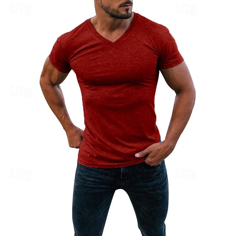 Men's T Shirt Moisture Wicking Shirts Short Sleeve V Neck Summer Plain Fashion Classic Comfortable Street Casual Sports Black White Red Top Tee for Men 25