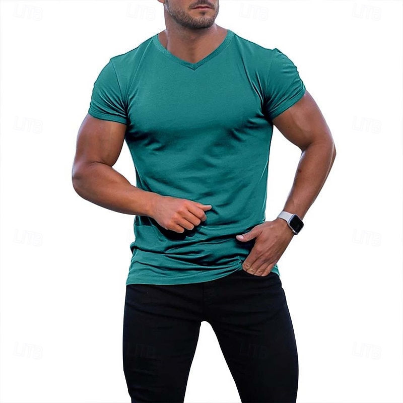 HOT ! Men's T Shirt Moisture Wicking Shirts Short Sleeve V Neck Summer Plain Fashion Classic Comfortable Street Casual Sports Black White Red Top Tee for Men