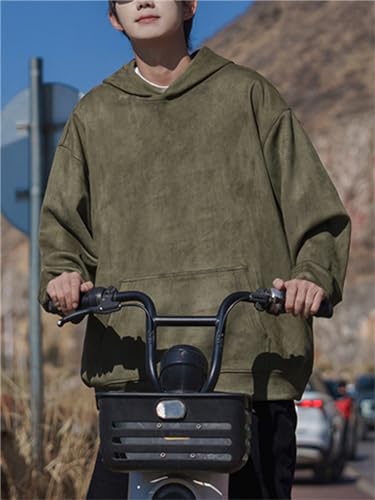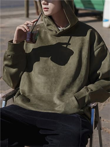 PAODIKUAI Men's Hoodies Pullover Suede Loose Fit Casual Long Sleeve Sweatshirts with Pocket 6