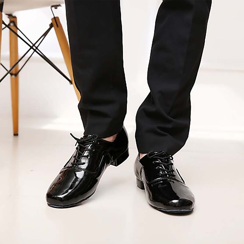 Men's Black Patent Leather Ballroom Dance Shoes – Classic Lace-Up Modern Dance Footwear for Competitions & Performances