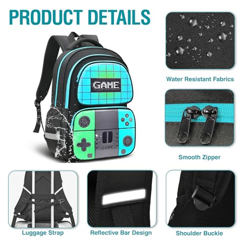 • 【Multi-Use Gamer Backpack Set】This game backpack and lunch box set is good breathability,tear-resistant,water-resistant and smooth zippers.Game backpack is suitable for elementary and middle school students,university,camping,hiking,travel,work,shopping and other outdoor activities.This gaming backpack set is designed to meet your and kids demands.