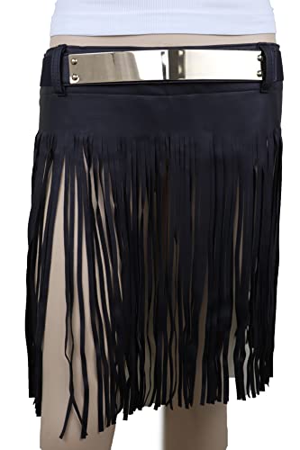 Women Fashion Holidays Style Skirt Belt Hip Gold Metal Plate Black Faux Leather Fringes Size S M 1