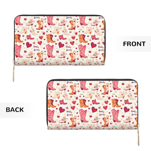 Wallet Women - Heart Cowboy Boots Print Leather Wallet Large Capacity Bifold Long Ladies Wallets With Zipper 6
