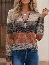 More information about Women's T Shirt Graphic Geometric Color Block Vintage Stylish Classic Long Sleeve Round Neck Regular Tops Daily Weekend Zipper Print Blue Brown Spring Fall Winter
