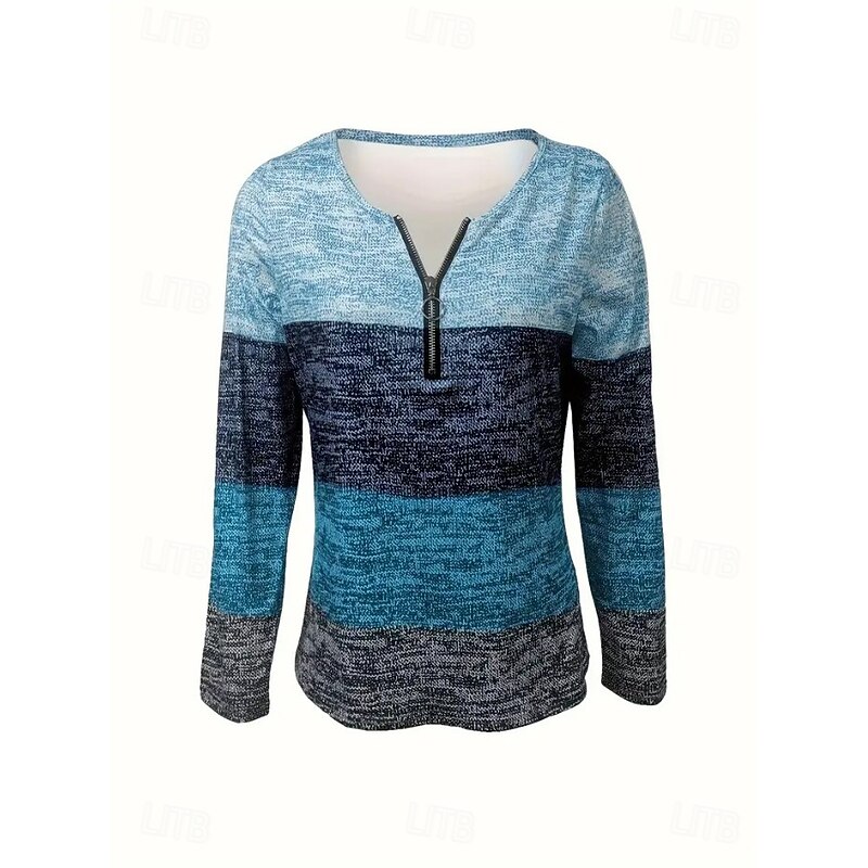 HOT ! Women's T Shirt Graphic Geometric Color Block Vintage Stylish Classic Long Sleeve Round Neck Regular Tops Daily Weekend Zipper Print Blue Brown Spring Fall Winter
