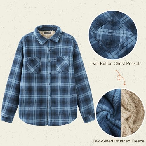 HODOSPORTS Mens Flannel Shirts Jacket Fleece Sherpa Lined Button Down Heavyweight Plaid Shirts Coat Long Sleeve with Pockets 5