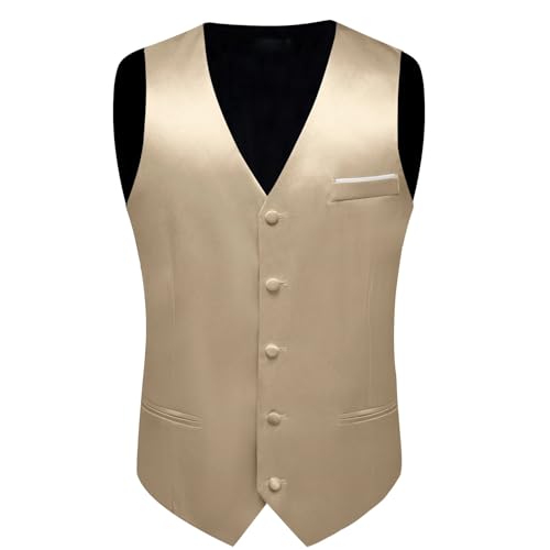 Men’s 4-Piece Satin Suit Vest Set – Includes Tie, Handkerchief, Cufflinks, Solid Color Wedding Waistcoat 7
