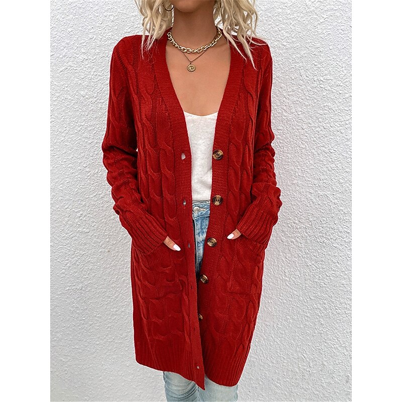 More information about Women's Sweater Cardigan Casual Soft Pure Color Ribbed V Neck Pocket Knitted Long Sleeve Long Tops Knit Outdoor Daily Weekend Red Green Fall Winter