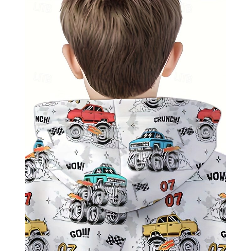Boys 3D Graphic Car Hoodie Long Sleeve Spring Fall Fashion Streetwear Kids 4-12 Years Hooded Outdoor Casual Daily Regular Fit 2