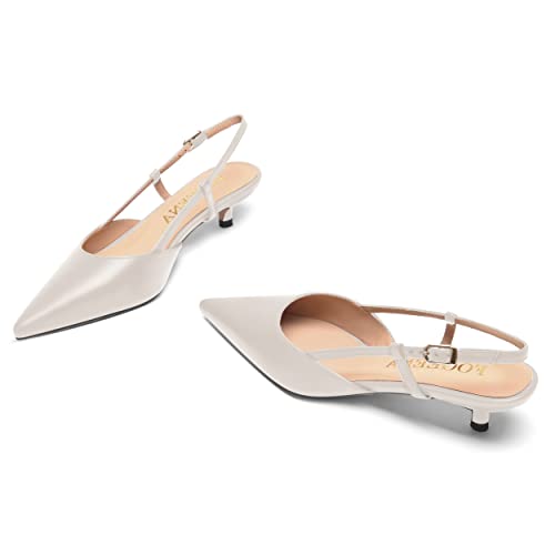 FOGEENA Womens Fashion Slingback Matte Leather Wedding Pointed Toe Slip On Kitten Low Heel Pumps Shoes 1.5 Inch 1