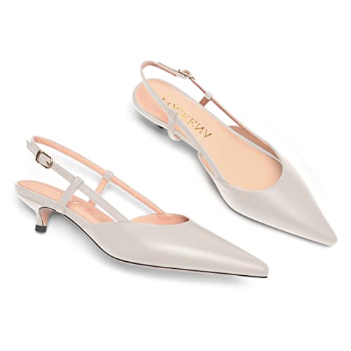 FOGEENA Womens Fashion Slingback Matte Leather Wedding Pointed Toe Slip On Kitten Low Heel Pumps Shoes 1.5 Inch 5