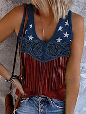 More information about Women's Patriotic Tank Top Flag Rock Beach Sleeveless Sleeveless V Neck Regular Tops Daily Club Uniforms Going out Wine Blue Dusty Blue Summer Spring