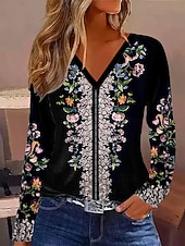 More information about Women's T Shirt Graphic Plants Tribal Vintage Stylish Classic Long Sleeve V Neck Regular Tops Daily Print Black Spring Fall Winter