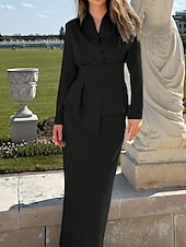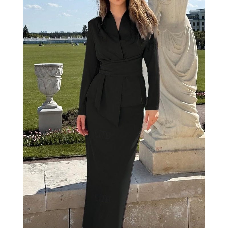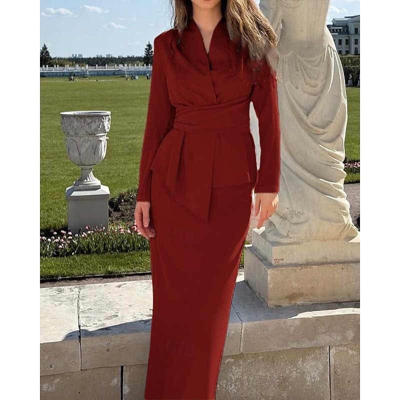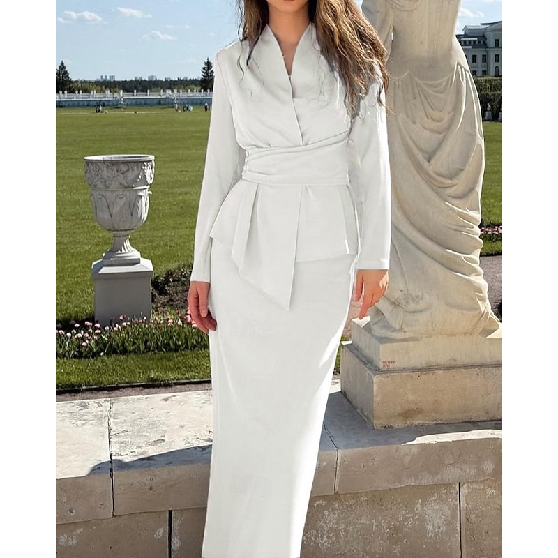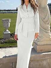 More information about 2 Pieces Tuxedo Dress Sets Sheath Formal Satin Elegant Simple Long Sleeve Floor Length V Neck