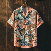 More information about Men's Dragon Button Up Shirt Printed Shirts Short Sleeve Subcultural Vacation Party Street Summer Cuban Collar Print Button-Down Pink Blue Purple Orange