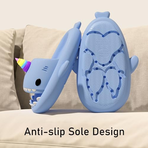 Zureto Unicorn Shark Slides Luminous Unicorn Fun Shark Slippers For Women Summer Thick-Soled Material Couple EVA 7