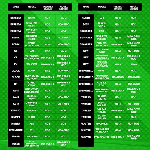 • Unmatched Grip - The MD-4 Medium is designed to fit Sub-Compact Medium Autos with up to a 3.6” barrel. It's also a glock 43x holster that has an ambidextrous design that can be applied to both left and right-hand users.