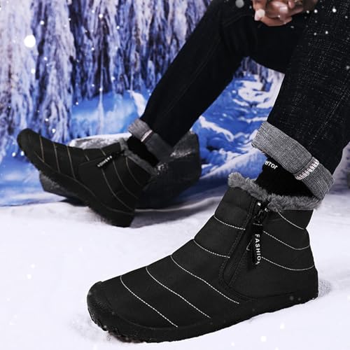 Men's Waterproof Snow Ankle Boots Winter Fur Lined Warm Zipper Closure One-Step Anti-Slip Outdoor Ankle Boots Mountaineering Hiking Warm Ankle Boots 6