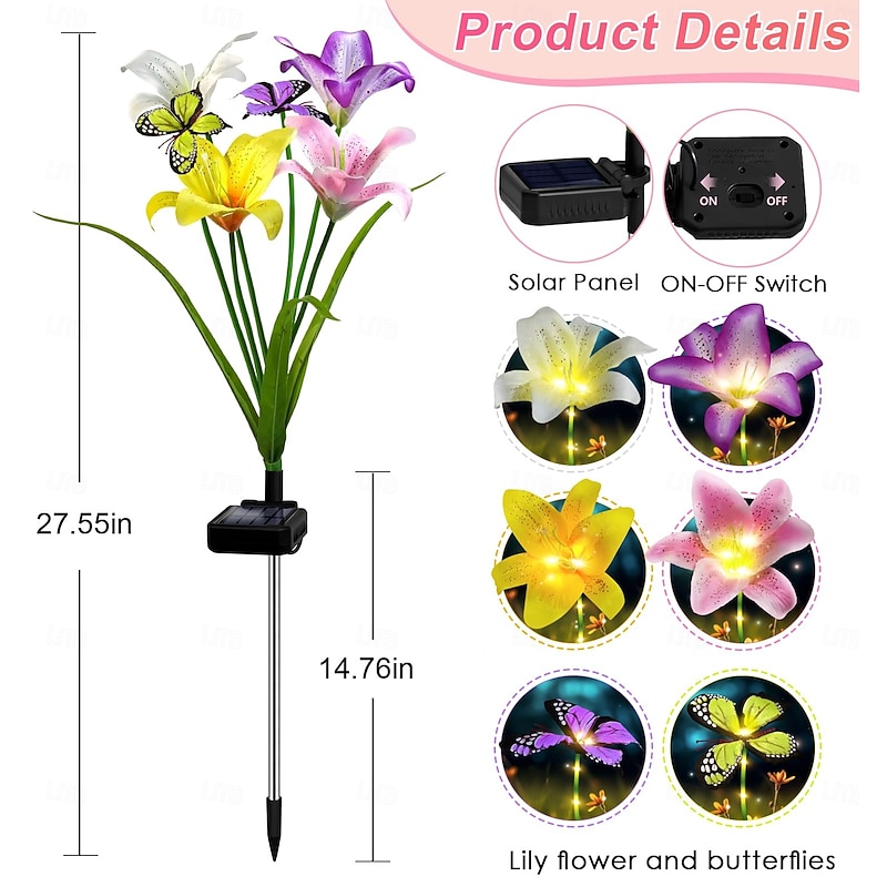 More information about 1 Pc Outdoor Flower Lights Pathway Solar Lily Butterfly Field Plug in Light Courtyard Garden Lawn Path Decorative Light Landscape Light Mother's Day Gift