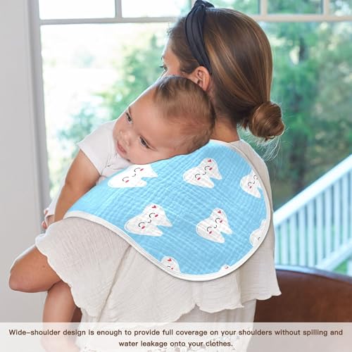 xigua Cartoon Teeth Muslin Baby Burp Cloths Set of 2, Super Soft & Absorbent Burping Rags, Cotton Burp Clothes Shower Gift for Newborn, Baby Girls and Boys 5