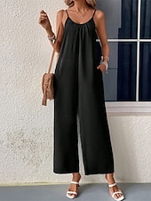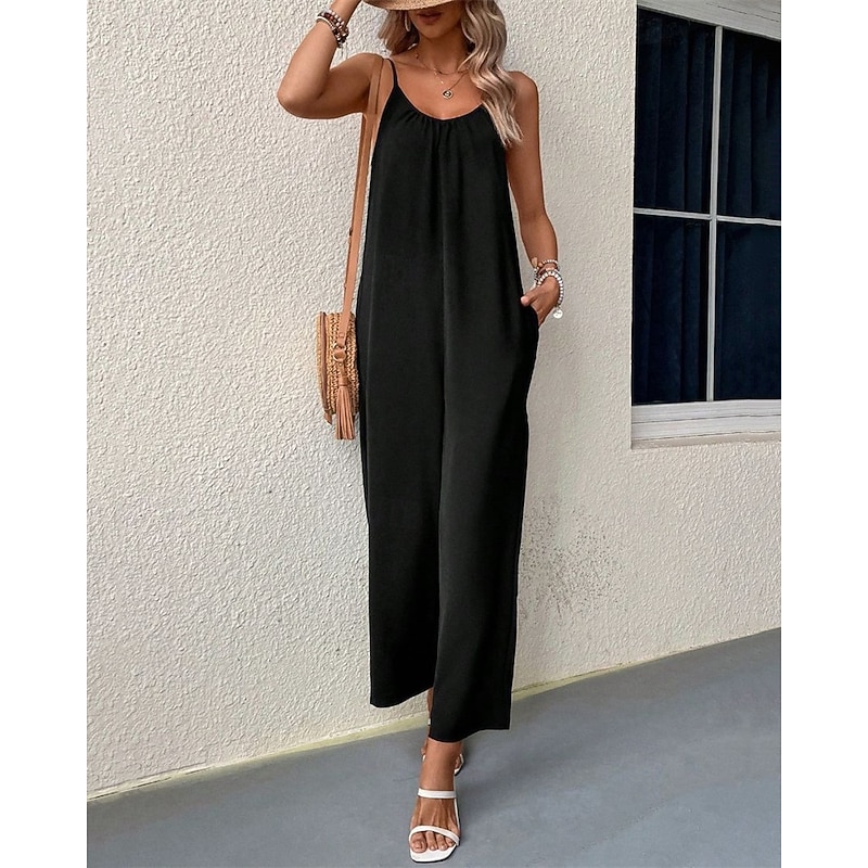 More information about Women's Normal Jumpsuit Streetwear Solid Color Sleeveless Straight Crew Neck Pocket Street Daily Regular Fit Black Summer