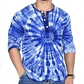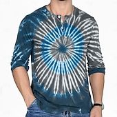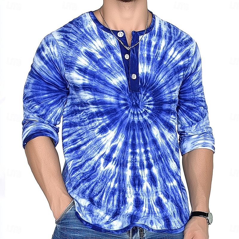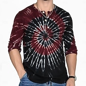 More information about Men's Tie Dye Retro Vintage Henley Shirt Tee Long Sleeve Shirt Long Sleeve Fashion Streetwear Basic Vacation Casual Sports Spring & Fall Lake blue Blue Purple Brown Red+Black Henley Henley T-Shirt