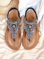 More information about Women's Beaded Floral Sandals – Stylish Boho Thong Sandals with Rhinestone Embellishments for Summer, Beach, and Casual Wear