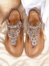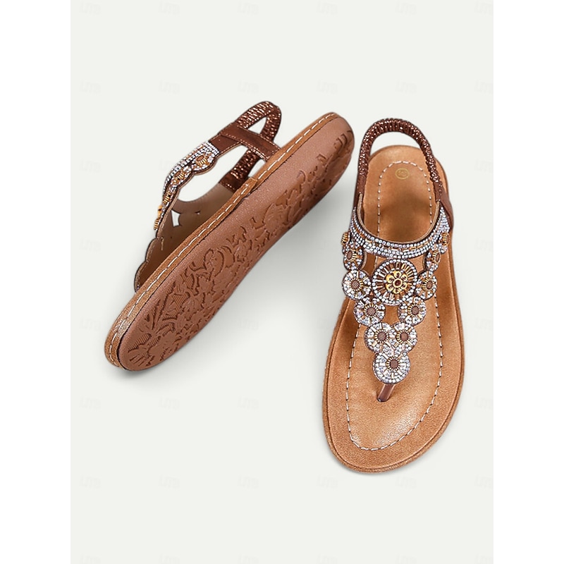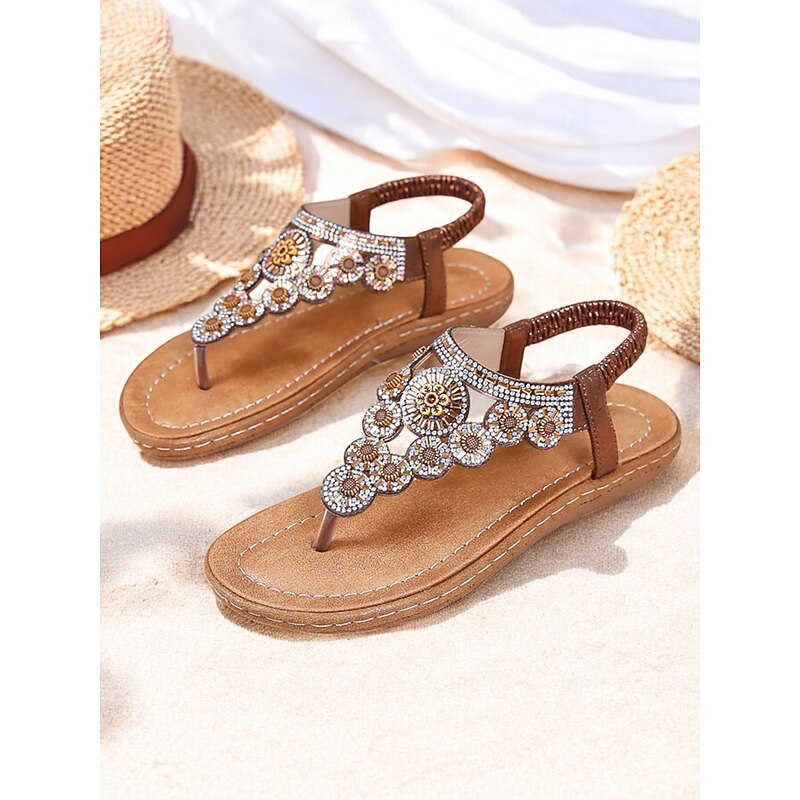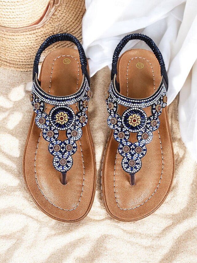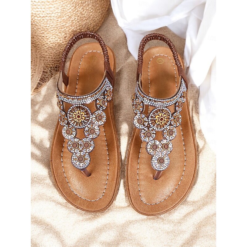 HOT ! Women's Beaded Floral Sandals – Stylish Boho Thong Sandals with Rhinestone Embellishments for Summer, Beach, and Casual Wear
