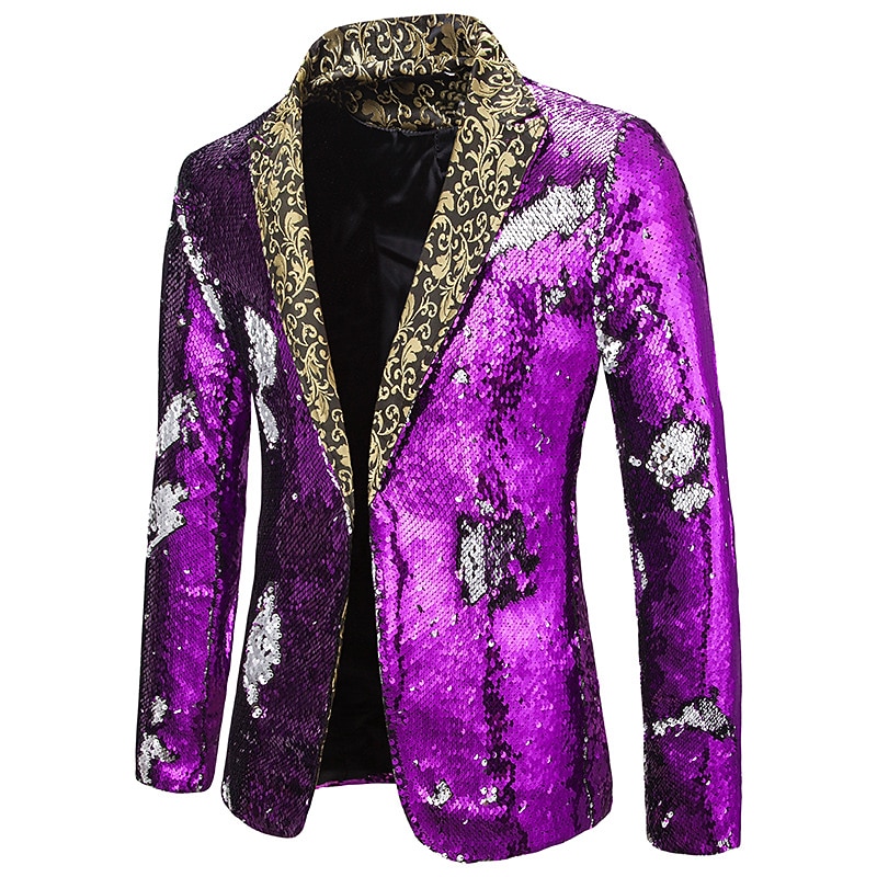 HOT ! Men's Jacket Blazer Party Street Thermal Warm Breathable Sequins Pocket Fall Winter Solid Color Streetwear Casual Peaked Lapel Regular Regular Fit Black Red Blue Purple Gold Jacket