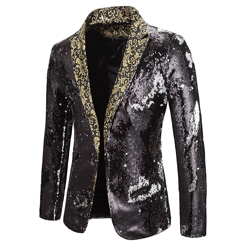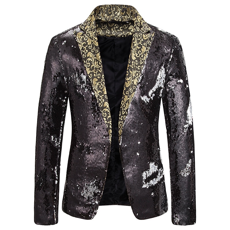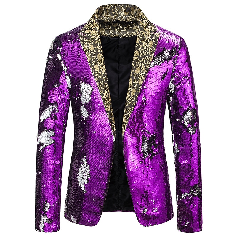More information about Men's Jacket Blazer Party Street Thermal Warm Breathable Sequins Pocket Fall Winter Solid Color Streetwear Casual Peaked Lapel Regular Regular Fit Black Red Blue Purple Gold Jacket