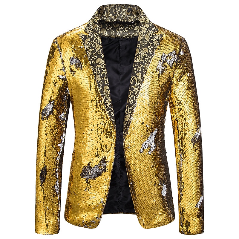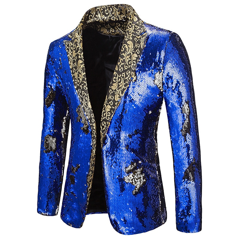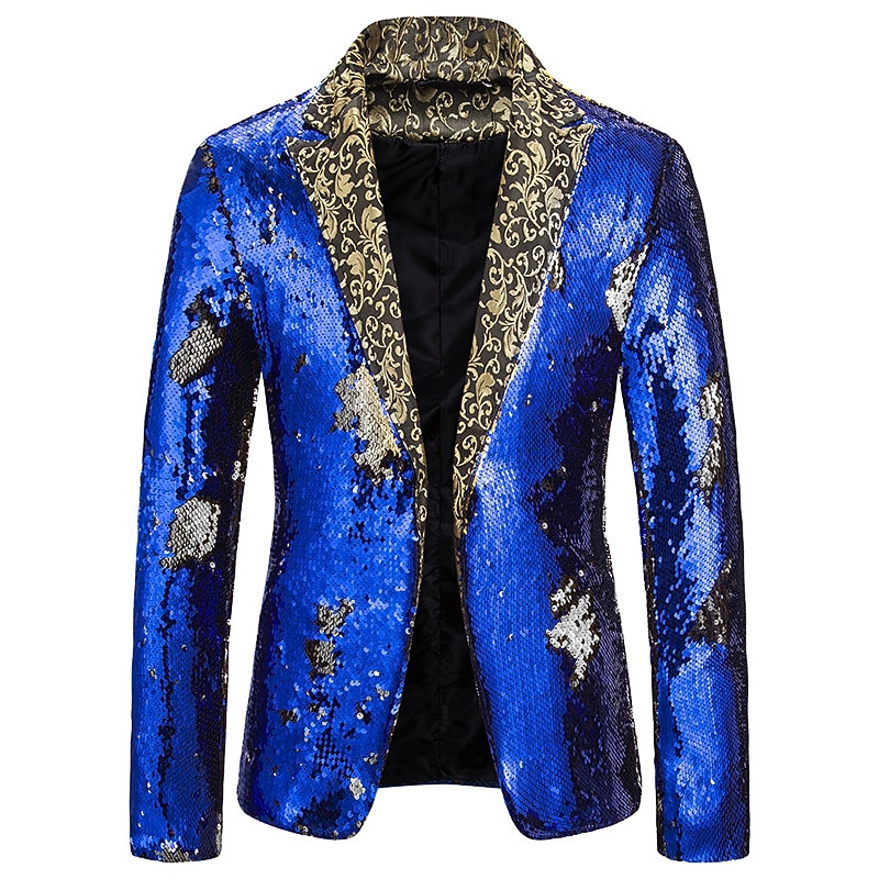Men's Jacket Blazer Party Street Thermal Warm Breathable Sequins Pocket Fall Winter Solid Color Streetwear Casual Peaked Lapel Regular Regular Fit Black Red Blue Purple Gold Jacket 18
