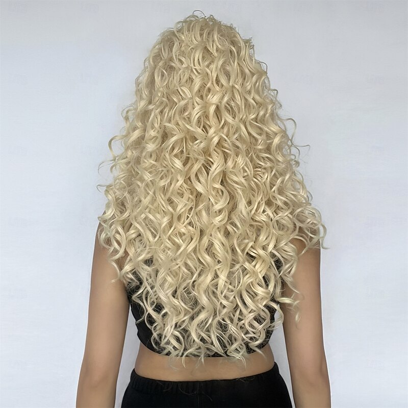 More information about Synthetic Wig Uniforms Career Costumes Princess Curly Deep Curly Middle Part Layered Haircut With Bangs Machine Made Wig 26 inch Light golden Synthetic Hair Women's Cosplay Party Fashion Blonde