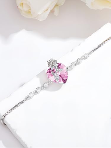 OCJ Birthstone Bracelet for Women 925 Sterling Silver Rose Flower Heart Tennis Bracelet Jewelry Anniversary Graduation Birthday Gifts for Women Wife Her Girlfriend 5