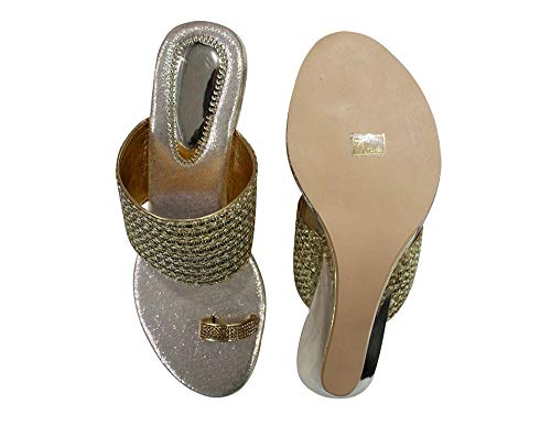 Stop n Style Gold Ethic Sandal Traditional Indian Shoes Handmade Wedge Heel Ladies 5