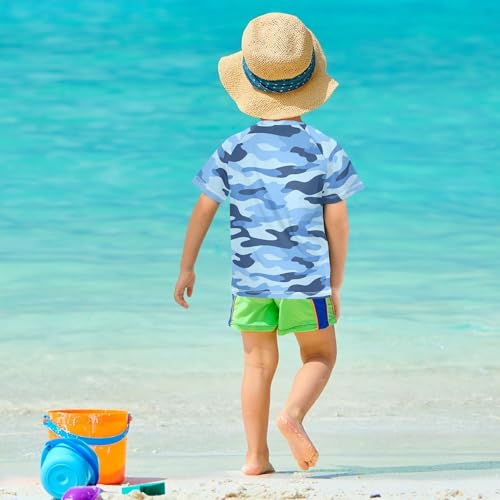Blue Camouflage Bathing Suit Girls Sun Protection Football Sports Shirt Swimwear Beach Tops 3T 5