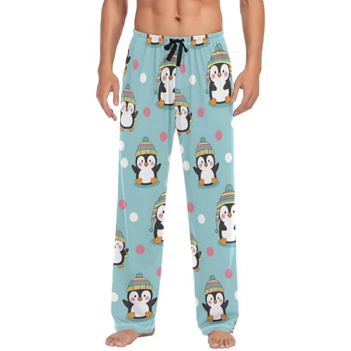 HOT ! Mens Pajama Pants Cute Penguins with Colorful Hats Soft Lounge Sleep Pant with Pockets Sleepwear PJ Bottoms for Men