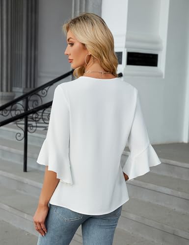 Blooming Jelly Womens 3/4 Length Sleeve Tops Summer Dressy Business Casual Blouses Work Shirts Chiffon V Neck Outfits 2025 3