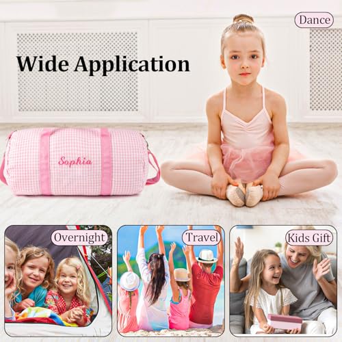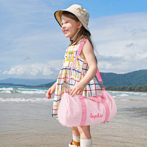 MT WORLD Girls Dance Bag Personalized Duffle Bags for Kids Monogram Seersucker Toddler Overnight Bag Travel Weekender Sleepover Bag with Removable Strap Custom Child Gift (Pink) 1