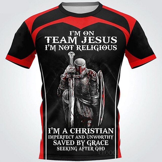 More information about Men's Color Block Templar Cross Soldier T Shirt Slogan T Shirts Christian T Shirts Short Sleeve T shirt 3D Print Crew Neck Shirt Vintage Sports Designer Outdoor Street Daily Black and Red Yellow Blue