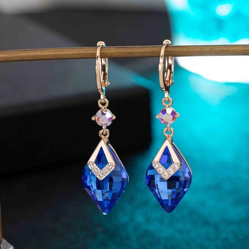 More information about Trendy Austrian Crystal Rhombus Drop Huggie Dangle Earrings for Women 14k Rose Gold Plated Hypoallergenic Jewelry Gifts