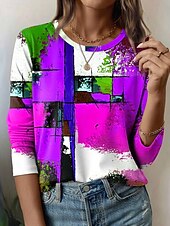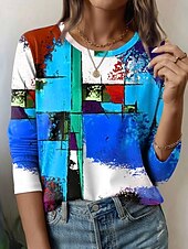 More information about Women's T Shirt Graphic Geometric Vintage Fashion Stylish Long Sleeve Crew Neck Round Neck Regular Tops Daily Weekend Print Blue Purple Orange Summer Spring Fall