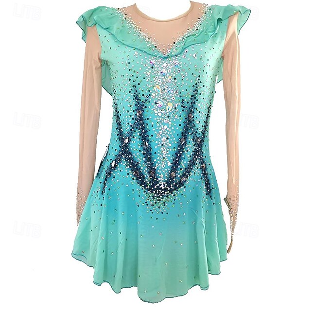 More information about Figure Skating Dress Women's Girls' Ice Skating Dress Green Patchwork Mesh High Elasticity Training Competition Skating Wear Classic Crystal / Rhinestone Long Sleeve Ice Skating Figure Skating