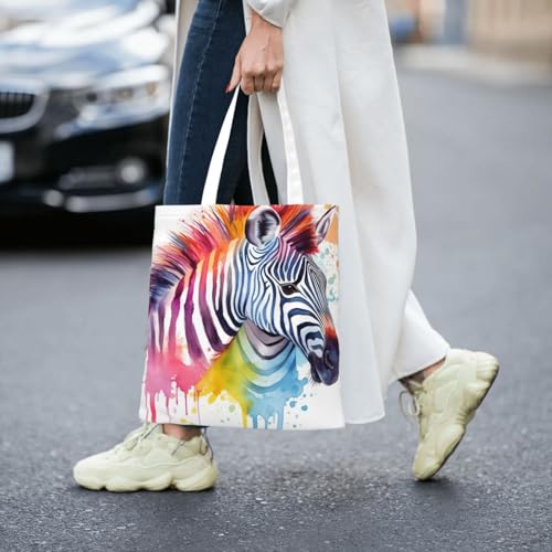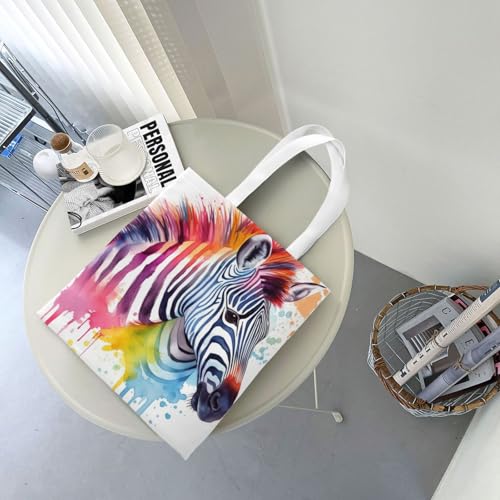 HOT ! Canvas Tote Bag for Women Shoulder Tote Purse Reusable Grocery Bag Cute Colorful Zebra Aesthetic Shopping Bags