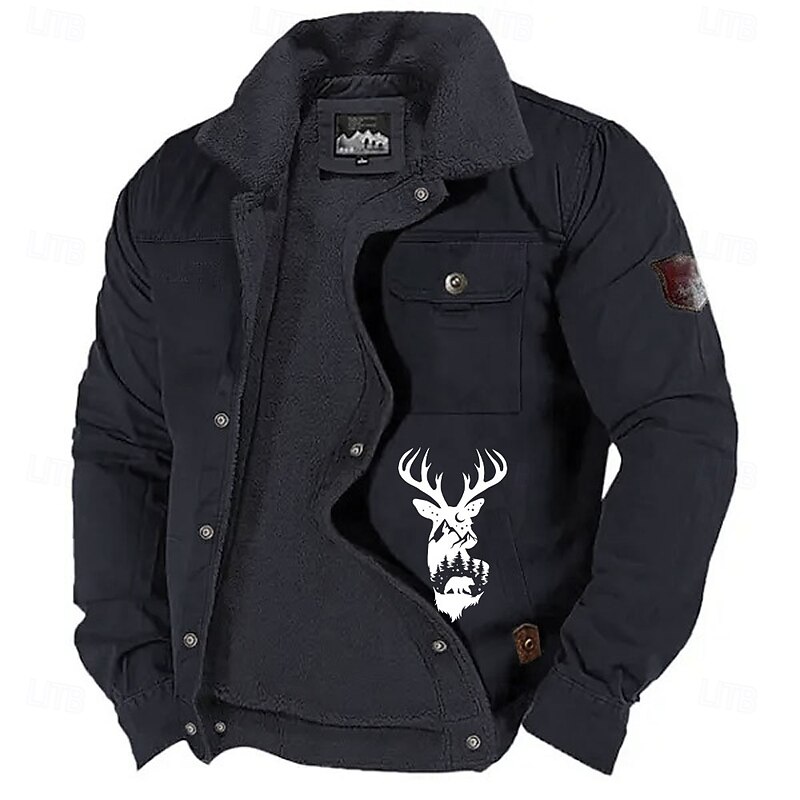 More information about Men's Reindeer Print Embroidered Fleece Jacket Sherpa Hunting Jacket Work Cargo Jacket Turn-Down Collar Warm Winter Cotton Jacket Vintage Casual Going Out Coat Multi-Pockets