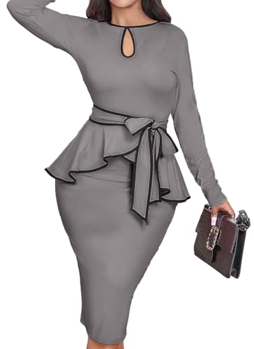 • Peplum pencil dress for women features keyhole crew neck, long sleeve, peplum bodycon dress.
