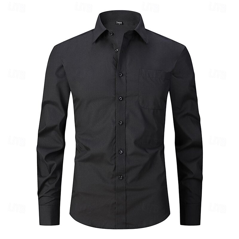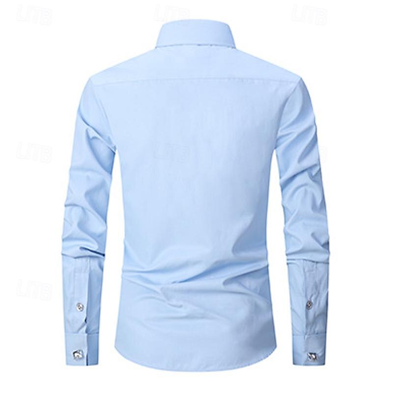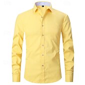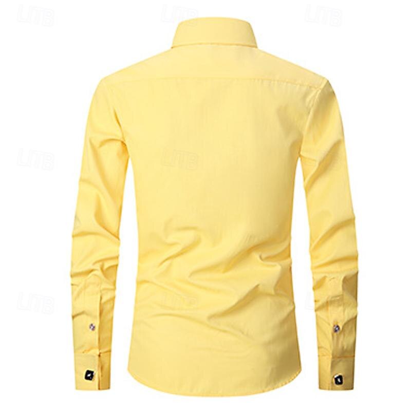 More information about Men's Shirt Dress Shirt Button Up Shirt Plain Wedding Party Black White Yellow Blue Long Sleeve Lapel Spring & Fall Clothing Apparel