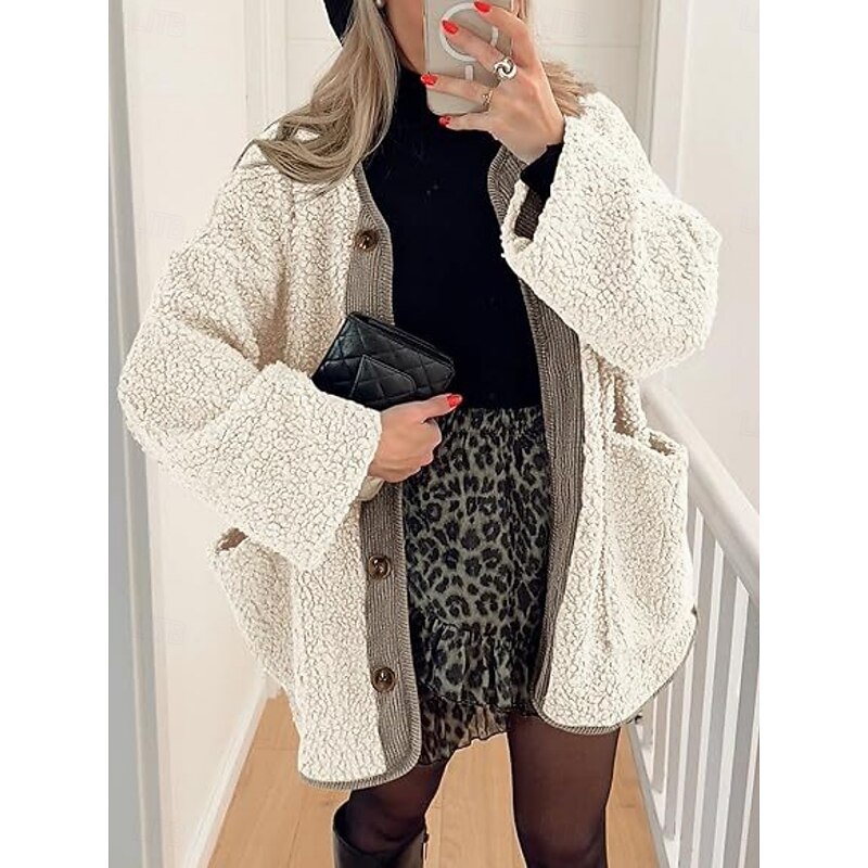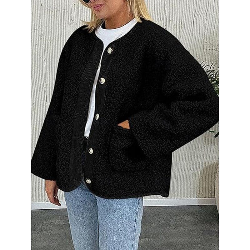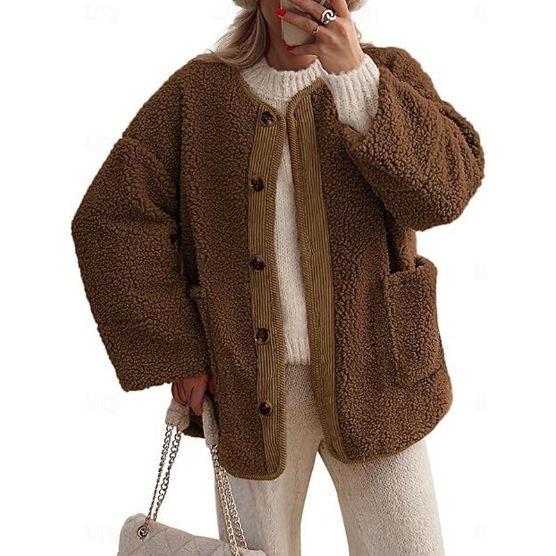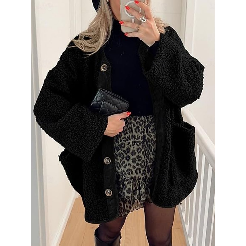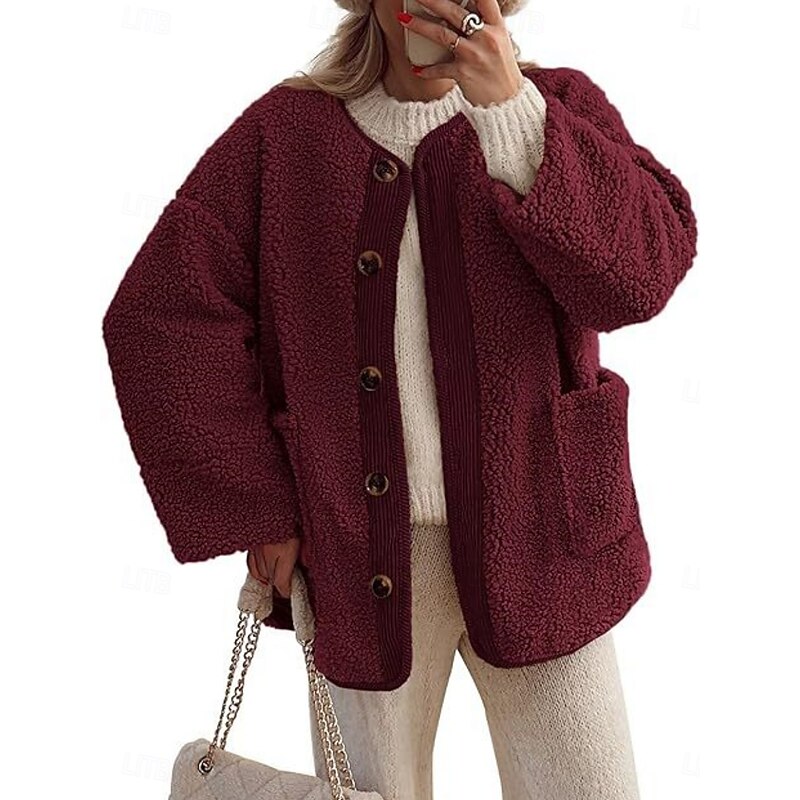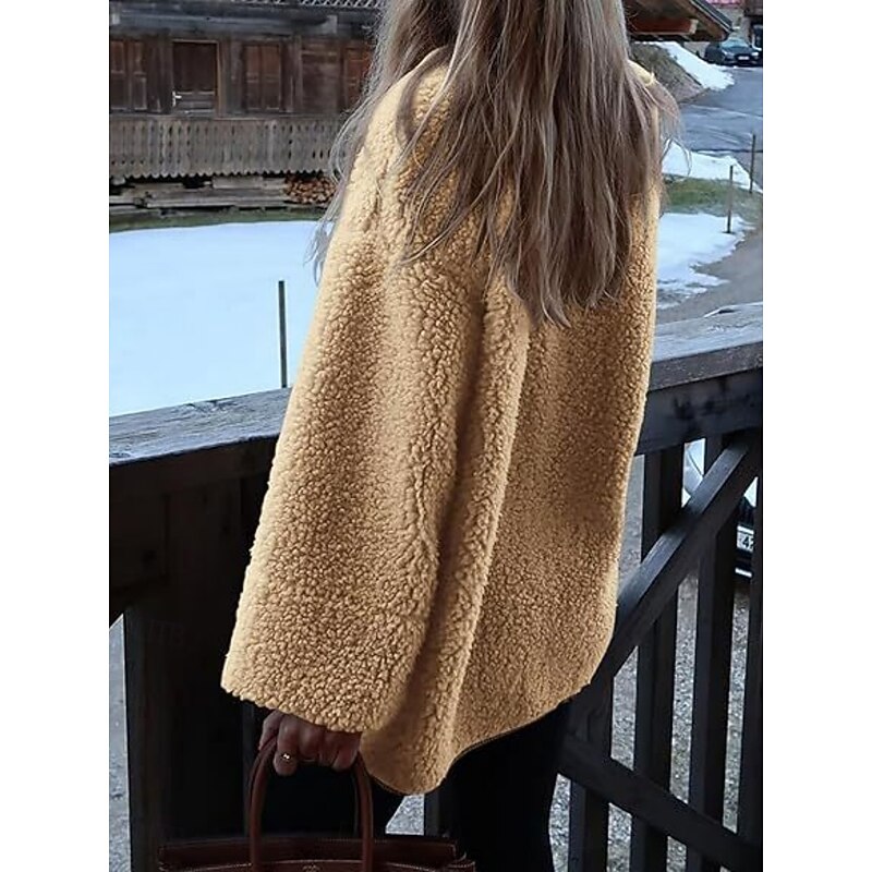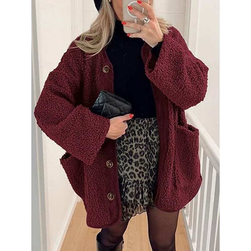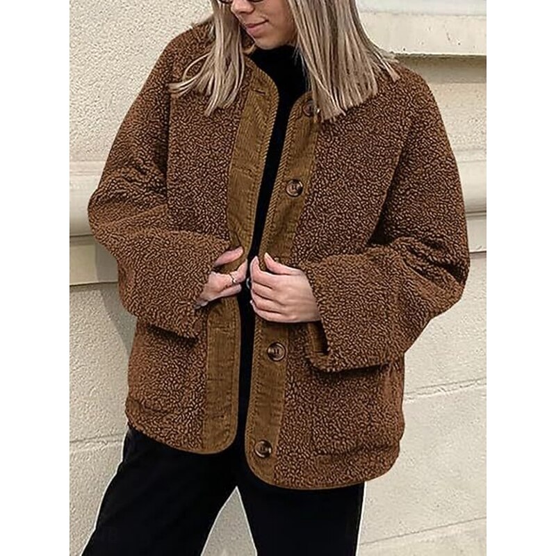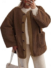 More information about Women's Winter Coat Teddy Coat Comfortable Breathable Pocket Buttons Casual Plain Vacation Street Casual Daily Wear Single Breasted Regular Turndown Loose Fit Long Sleeve Outerwear Black Wine Brown