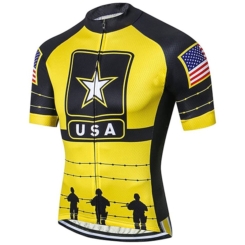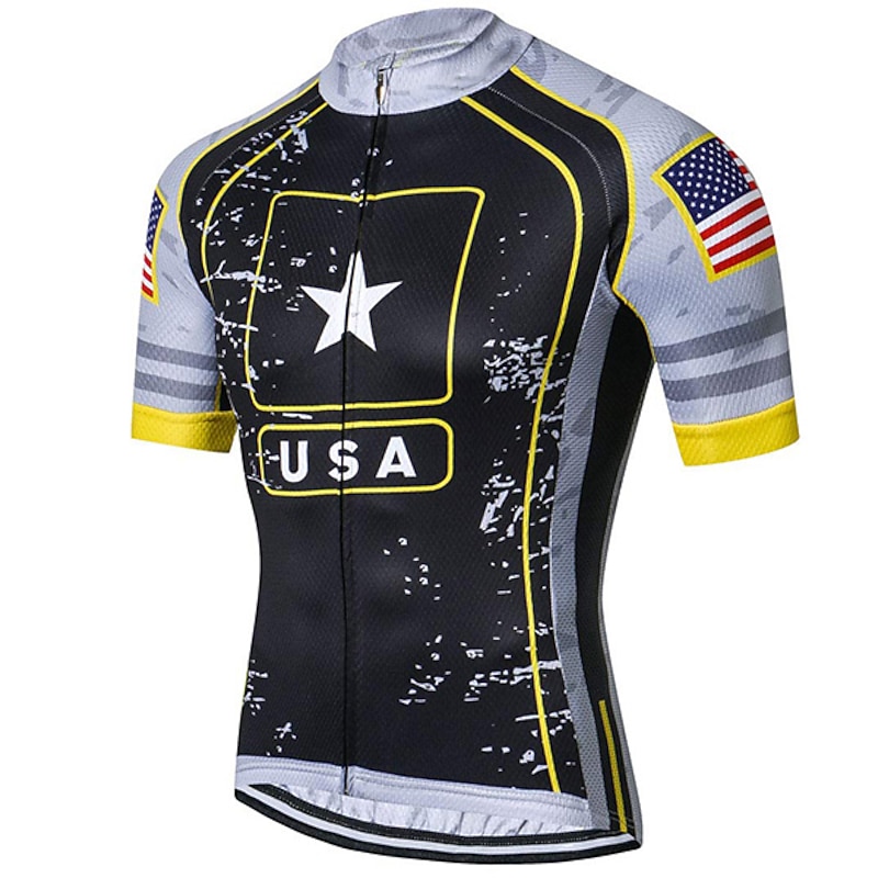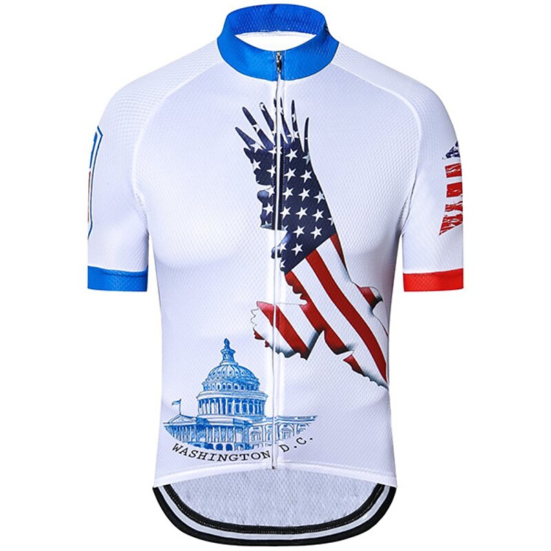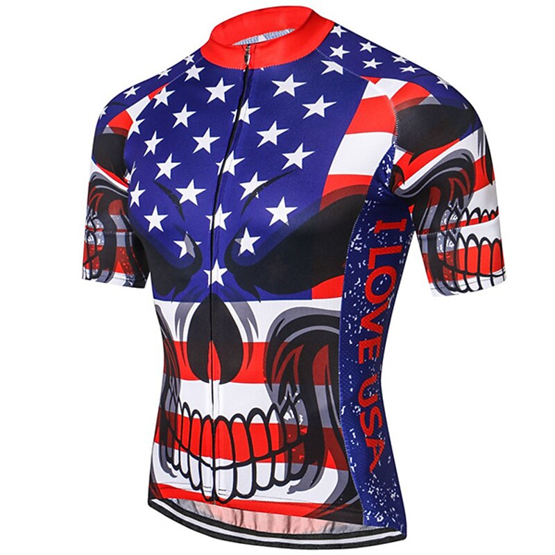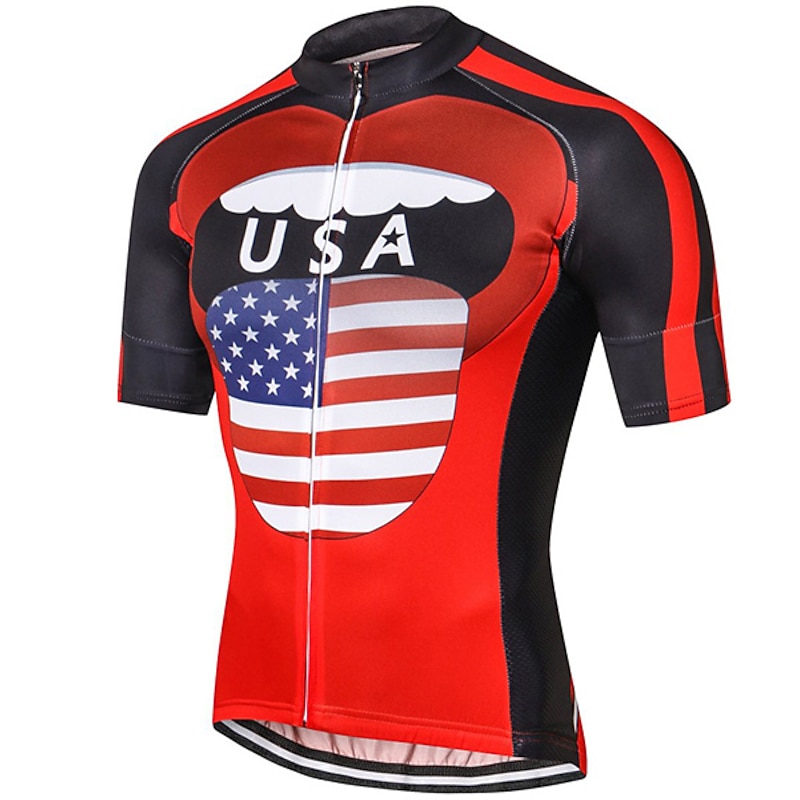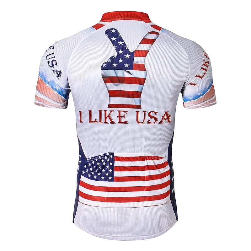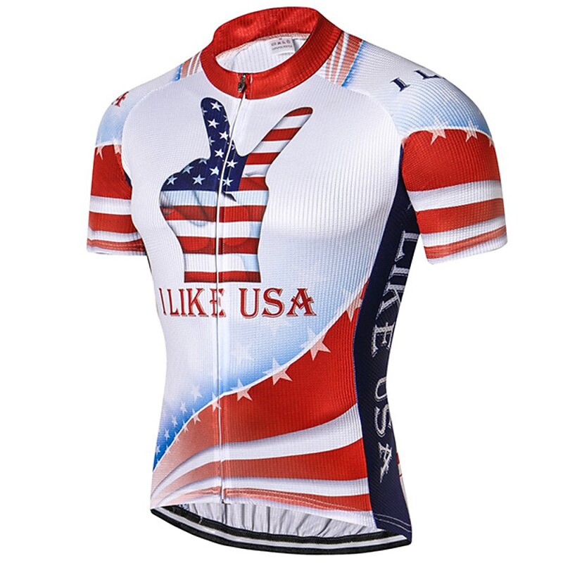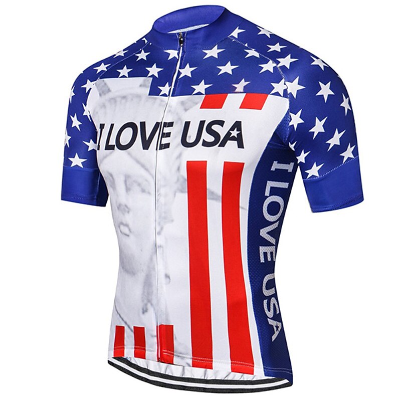 Highlights This men's cycling jersey boasting an I LOVE USA pattern is crafted for comfort Comprised of quick-drying Terylene the short-sleeve top features three rear pockets Perfect for any cyclists it's light wicking and great for summer rides