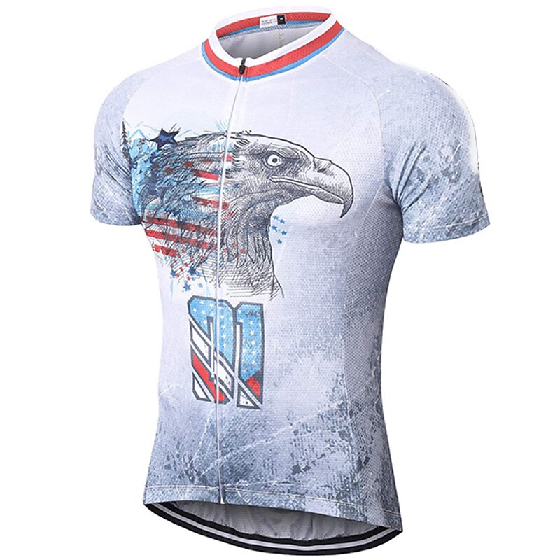 Men's Cycling Jersey I LOVE USA Pattern Short Sleeve Bike Jersey Top with 3 Rear Pockets Quick Dry Lightweight Soft Wicking Grey Sports Clothing Apparel 21
